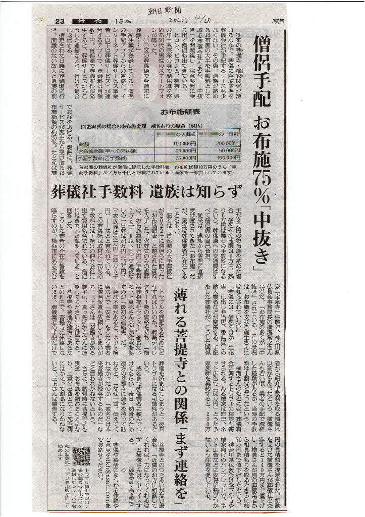 22.僧侶手配手数料がお布施の75%相当となるケースも